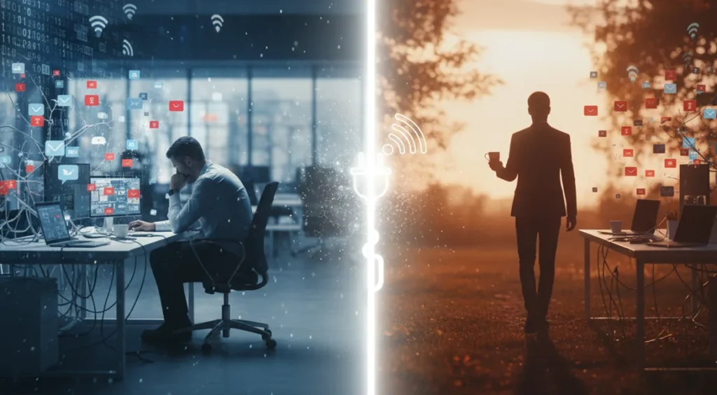 Technology has fundamentally changed work. Your parents’ generation had office jobs that ended when they left the building. Today, your work follows you everywhere through your phone. This isn’t progress if it destroys your health.